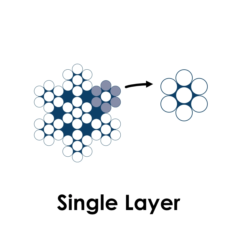 - Single Layer เป็นเส้นลวดที่มีขนาดเท่ากัน มัดล้อมรอบแกนเส้นลวดที่อยู่ตรงกลาง